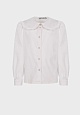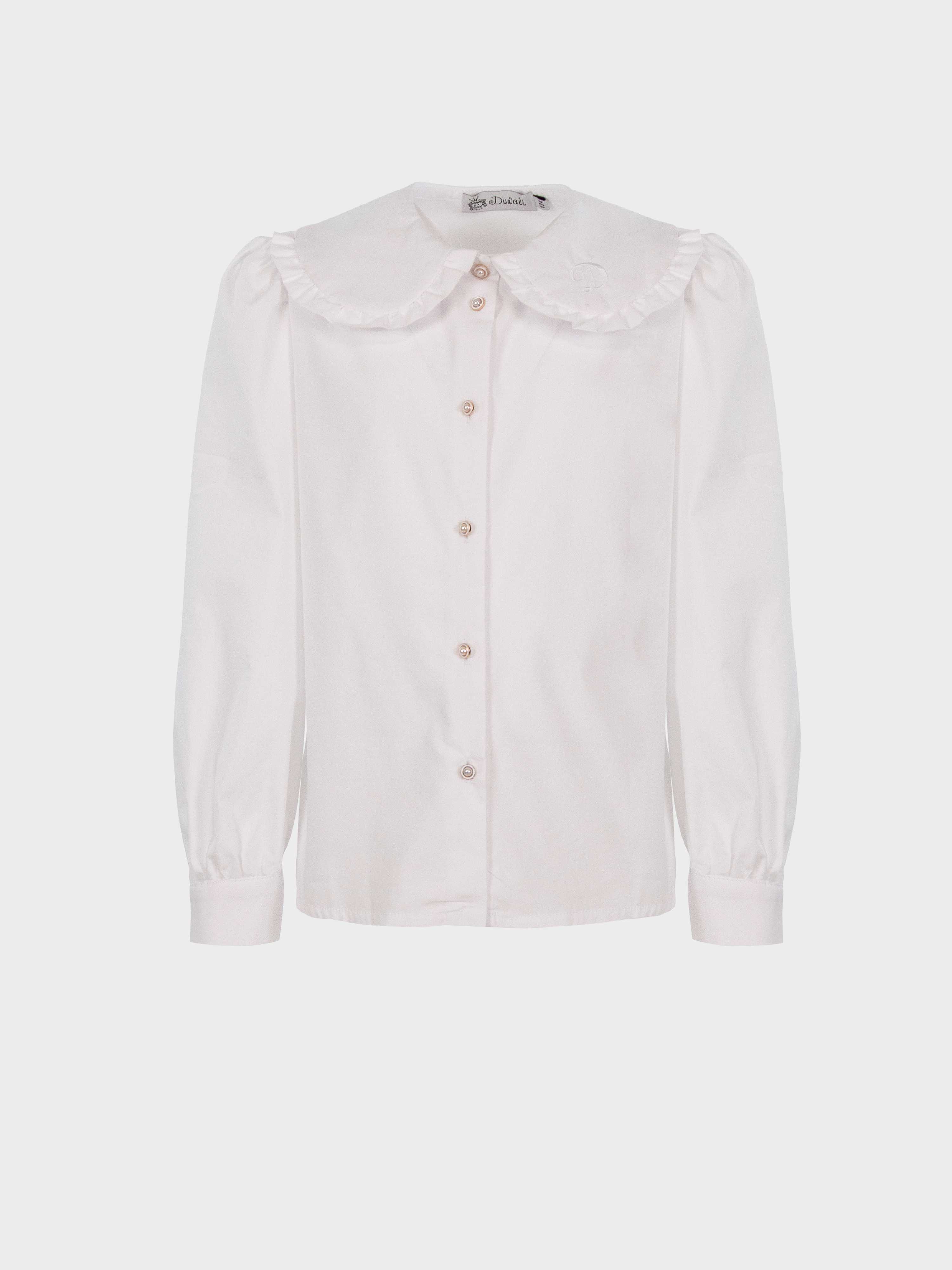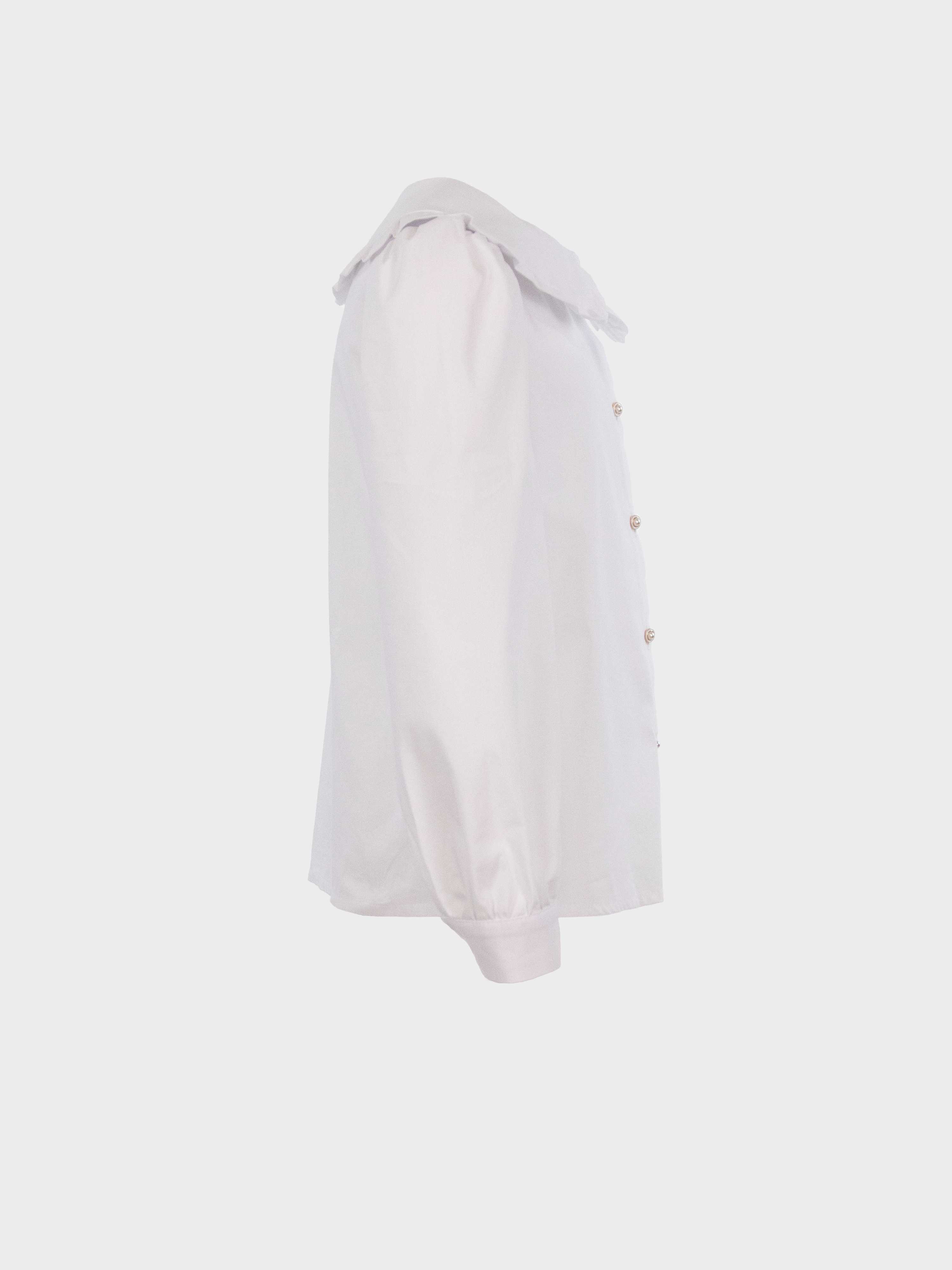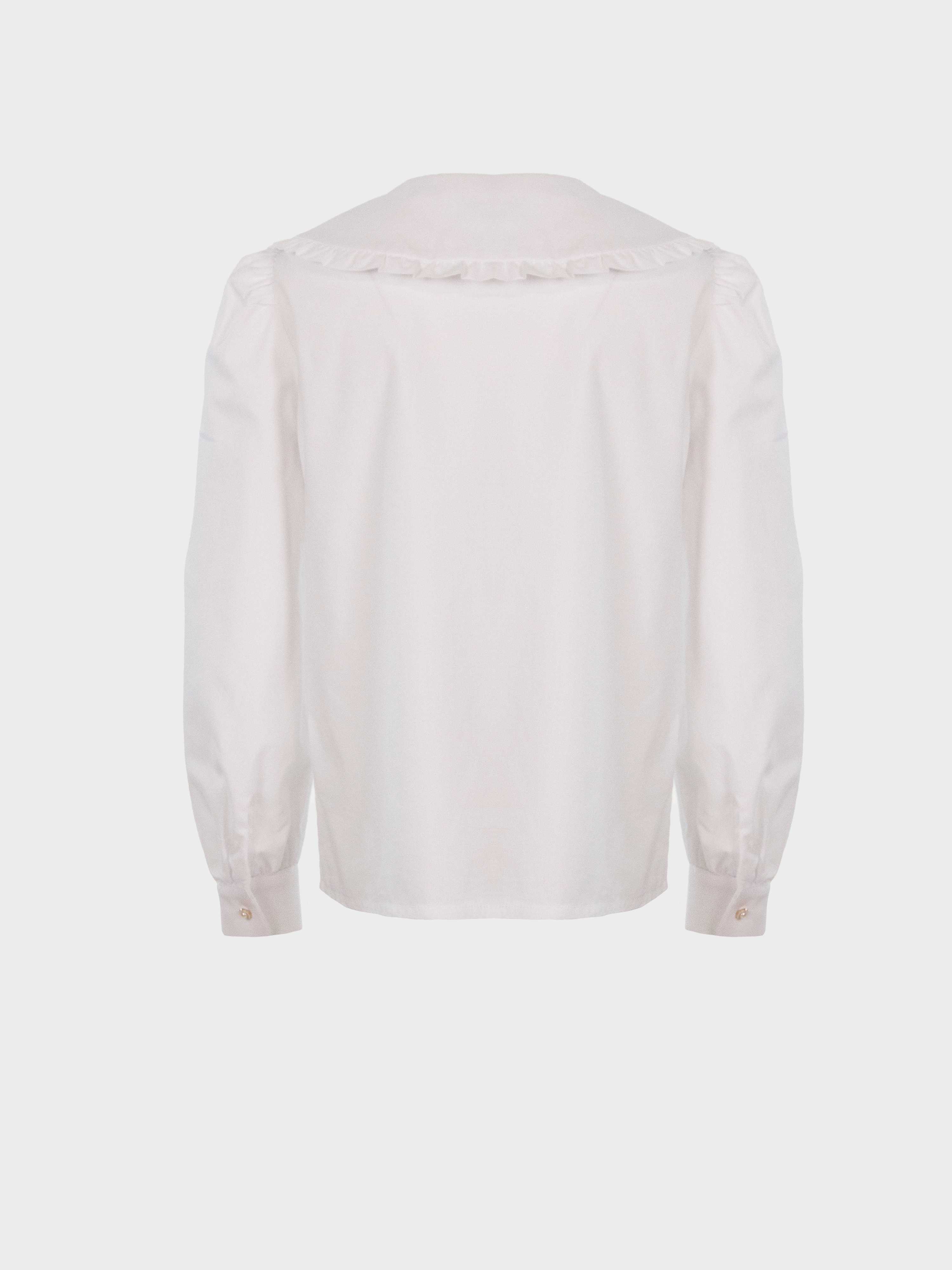 Белая блузка для девочки с большим отложным круглым воротником и манжетами на рукавах: