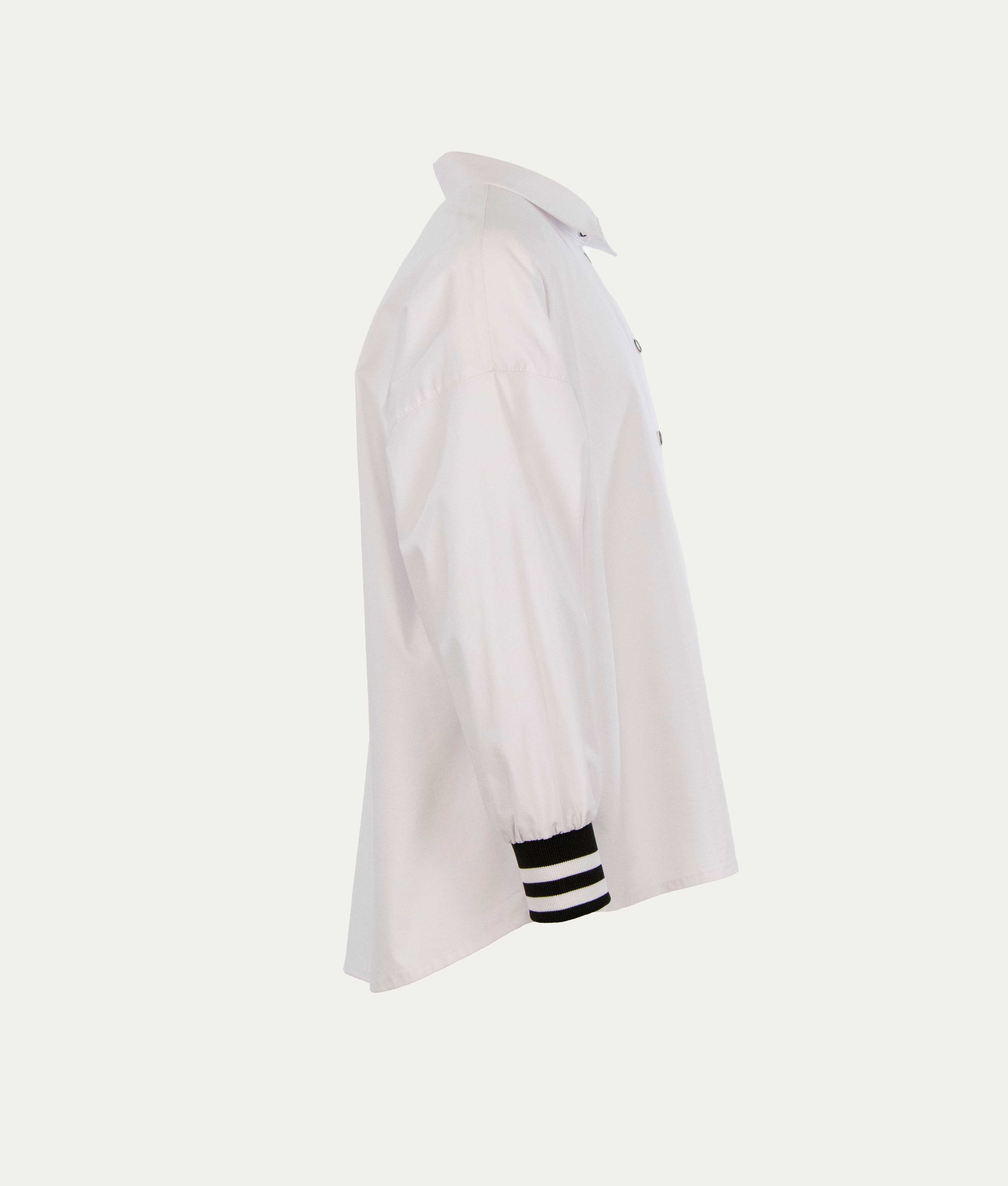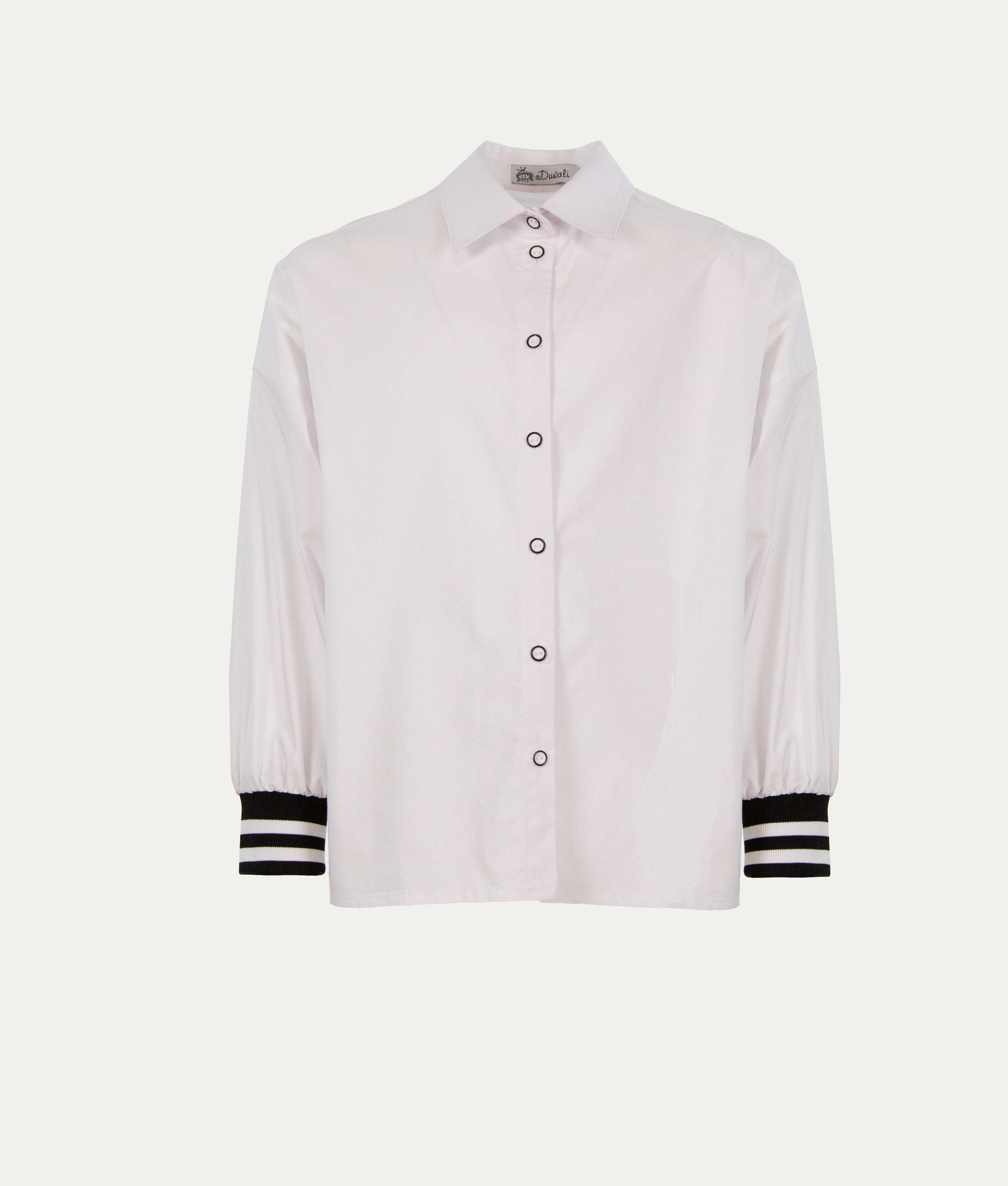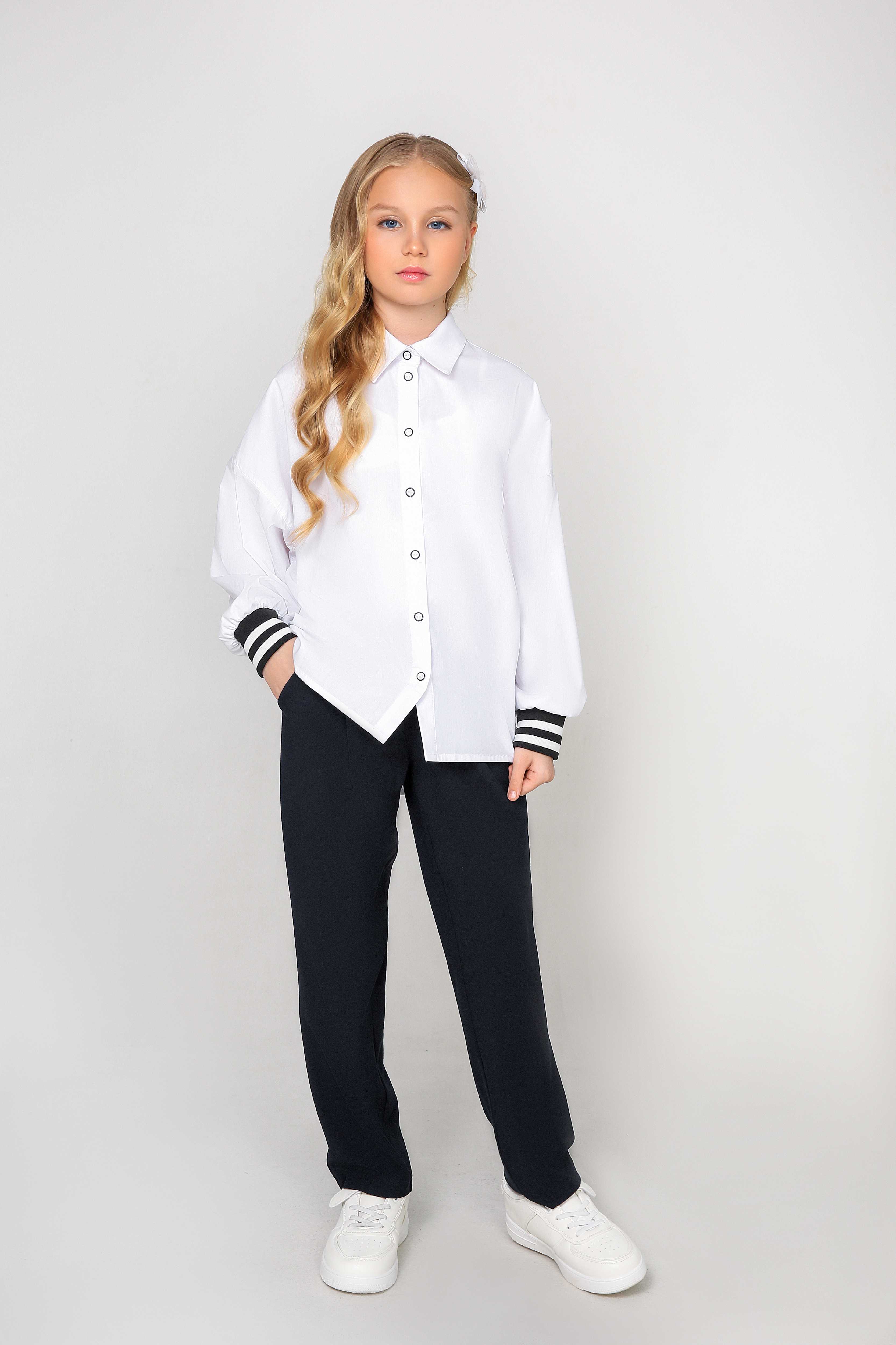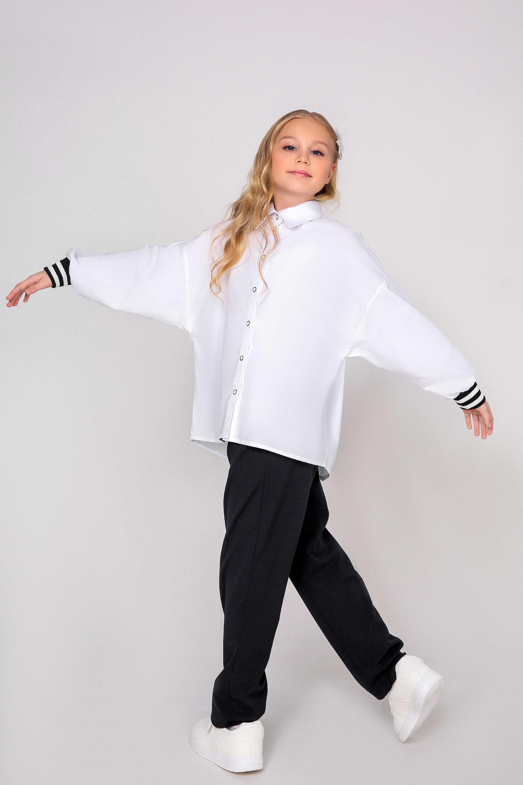 Оригинальная рубашка для девочки DUWALI подходит для школы, повседневной носки и выразительных образов. Свободный крой оверсайз обеспечивает полный комфорт во время движения и выглядит актуально. Спущенная линия плеч, широкие рукава и контрастные манжеты в черно-белую полоску выгодно выделяют эту модель на фоне остальных.
