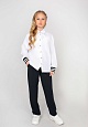 Легкая ткань на основе хлопка, полиэстера и лайкры поддерживает комфортный микроклимат в любую погоду. Зимой на рубашку девочка может надеть свободный кардиган или жакет. За счет полиэстера в составе материал меньше мнется и пачкается, легко отстирывается в бытовой машинке, долго сохраняет аккуратный внешний вид и не деформируется.
